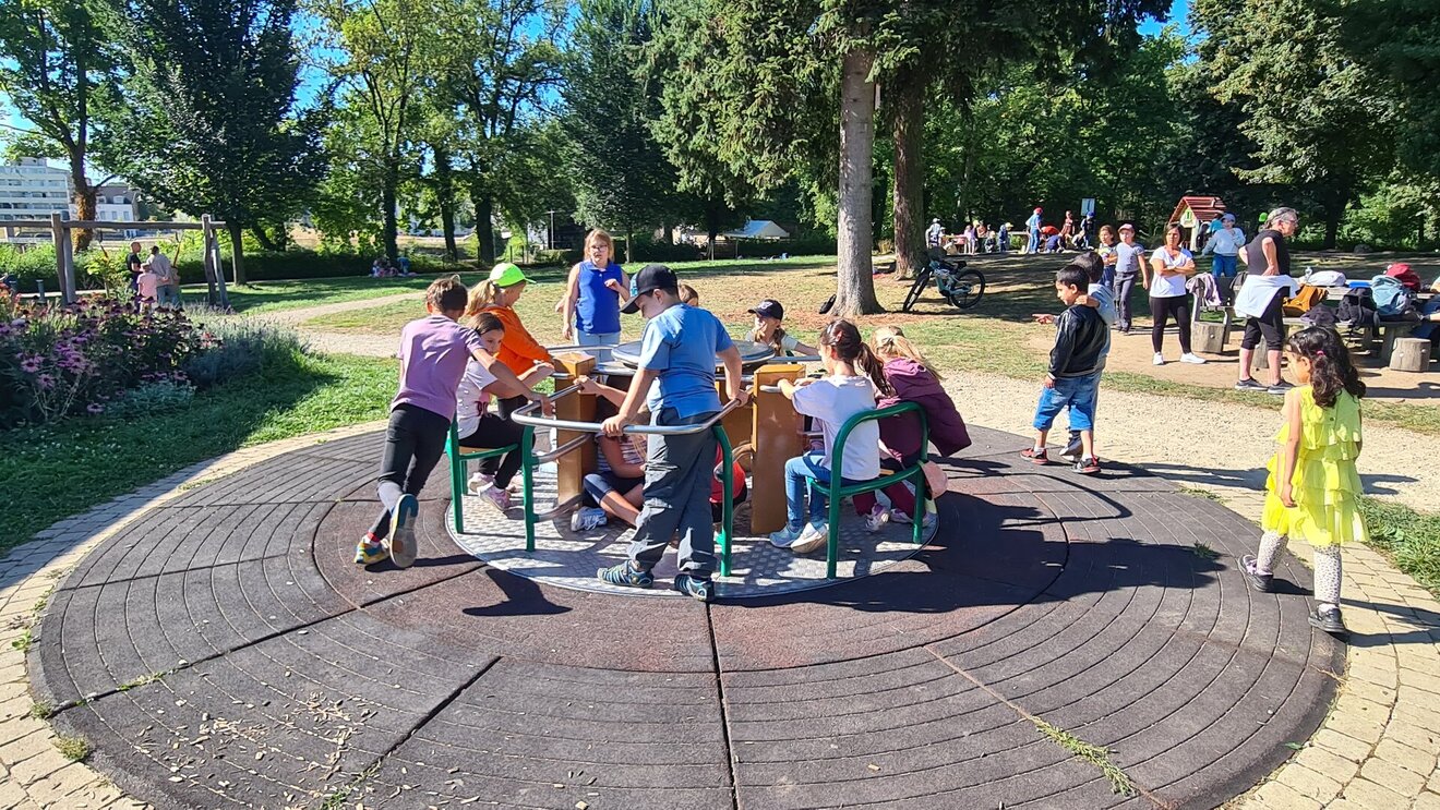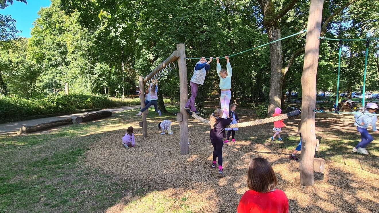 Die ganze Schulgemeinschaft machte sich auf den Weg in den Stadtpark, wo viel Platz zum Spielen, Toben und Entspannen auf uns wartete. Auf dem Spielplatz, beim Fußballspielen oder einfach beim gemütlichen Picknick auf der Wiese – überall war fröhliches Lachen zu hören und die gute Laune spürbar.