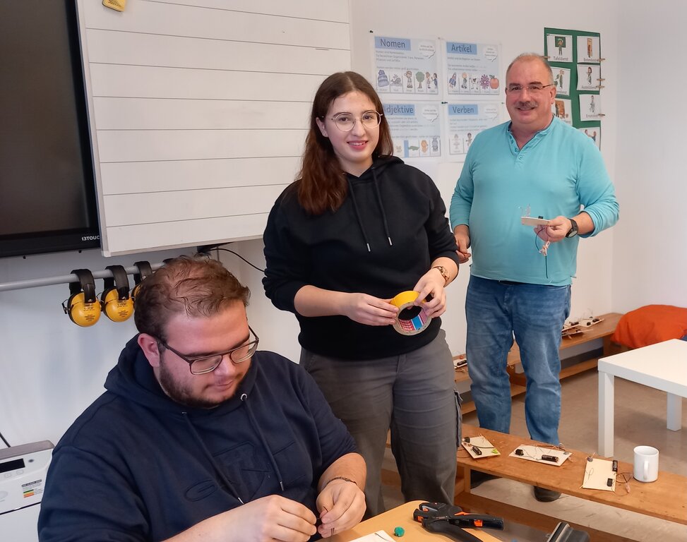 Im Anschluss an die lehrreiche Präsentation hatten die Schülerinnen und Schüler die Möglichkeit, selbst aktiv zu werden und das Spiel „Der heiße Draht“ zu bauen. Das benötigte Material hierfür wurde freundlicherweise von Familie Junker gesponsert.