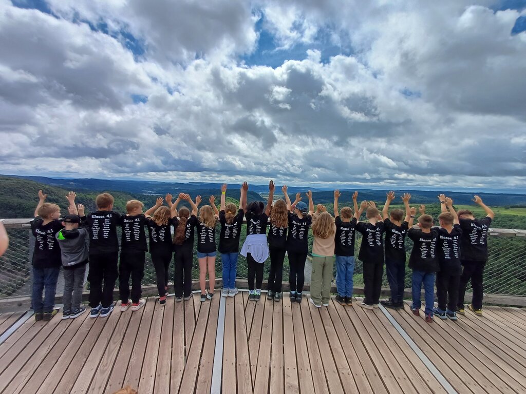 Am anderen Tag ging es hoch hinaus – auf den Baumwipfelpfad Saarschleife. Dort entdeckten die Kinder die Natur aus einer ganz neuen Perspektive. Besonders beeindruckend war der Blick vom Aussichtsturm auf die berühmte Saarschleife. Im Anschluss hatten alle noch viel Spaß auf dem großen Abenteuerwald-Spielplatz, wo geklettert, geschaukelt, gesprungen und getobt wurde.