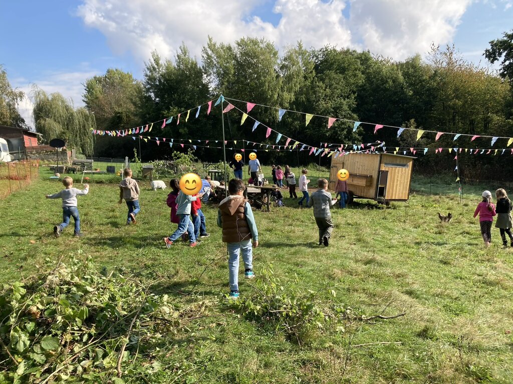 Am Montag, den 29. September durfte die Klasse 1.2 einen spannenden und lehrreichen Ausflug zur Familie Blaes machen. Herr Blaes nahm sich viel Zeit, um den Kindern seine Hühner, den Hahn und die flauschigen Küken zu zeigen. Mit großen Augen bestaunten die Kinder das bunte Federvieh und lauschten interessiert den Erklärungen zu Haltung und Pflege. Besonders aufregend war es, als die Kinder selbst auf Eiersuche gehen durften – und dabei so manches Nest entdeckten!