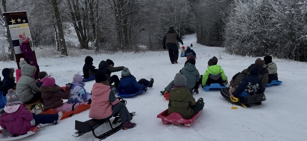 Bei winterlichem Wetter ging es gemeinsam zum Schlittenhang, wo die Kinder ausgelassen rodeln und den Schnee genießen konnten. Für das leibliche Wohl sorgten engagierte Eltern, die warme Getränke und leckeren Kuchen mitgebracht hatten. So konnten sich alle zwischendurch aufwärmen und stärken. Der Ausflug bereitete allen großen Spaß und war ein gelungener Start nach den Ferien.