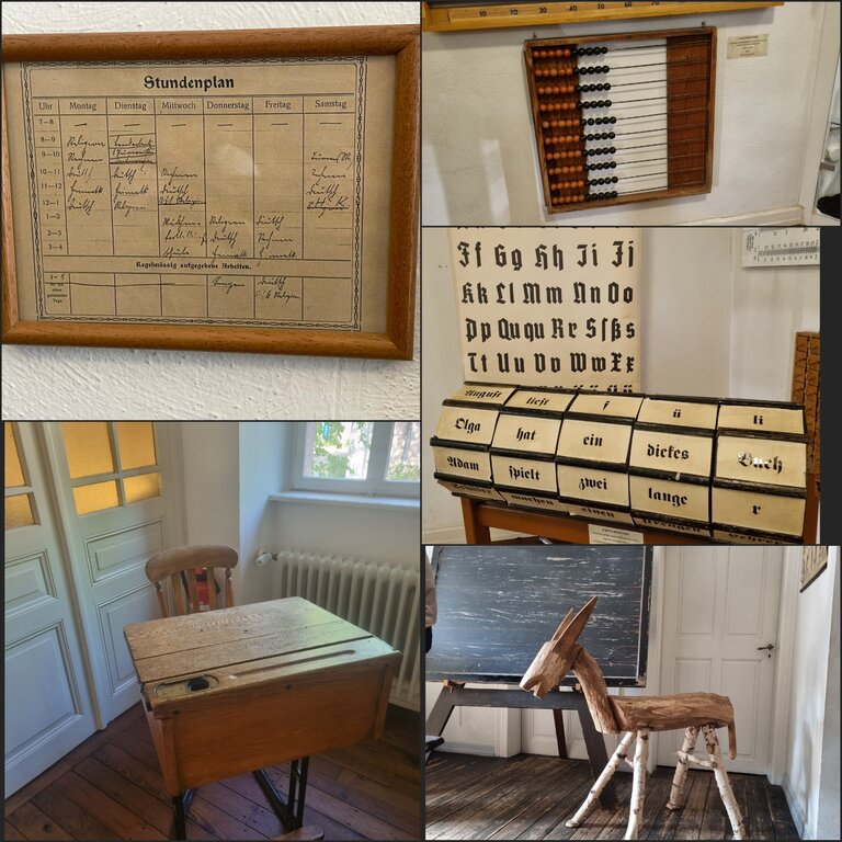 Am 6. Mai 2025 machten die dritten Klassen unserer Grundschule einen spannenden Ausflug ins Schulmuseum in Ottweiler. Dort angekommen, fühlten die Kinder sich in die Vergangenheit versetzt, denn die Räume waren vollgepackt mit alten Schulsachen. Die Schüler sahen unter anderem einen alten Abakus aus Holz und eine Lesetrommel - ein Gerät, das früher zum Lesenlernen verwendet wurde. Sie lernten auch Strafen für unaufmerksame Schüler kennen, wie die Eselsmütze und ein Brett mit Erbsen, auf dem man knien musste. Die Kinder waren froh, dass es solche Bestrafungen heute nicht mehr gibt.