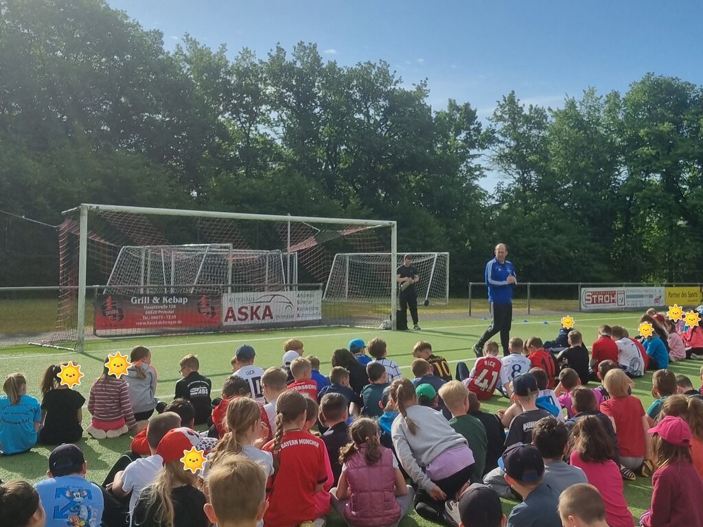 Am 27. Mai 2025 fand unser Sportfest statt. Bei angenehmen Temperaturen versammelten sich die Kinder und Lehrkräfte auf dem Sportplatz in Primstal. Unser Schulleiter, Herr Hort, eröffnete die Veranstaltung mit einer herzlichen Begrüßung und motivierenden Worten.
