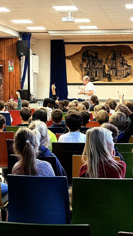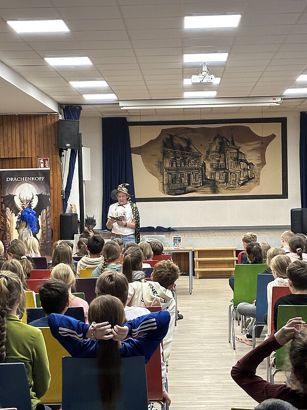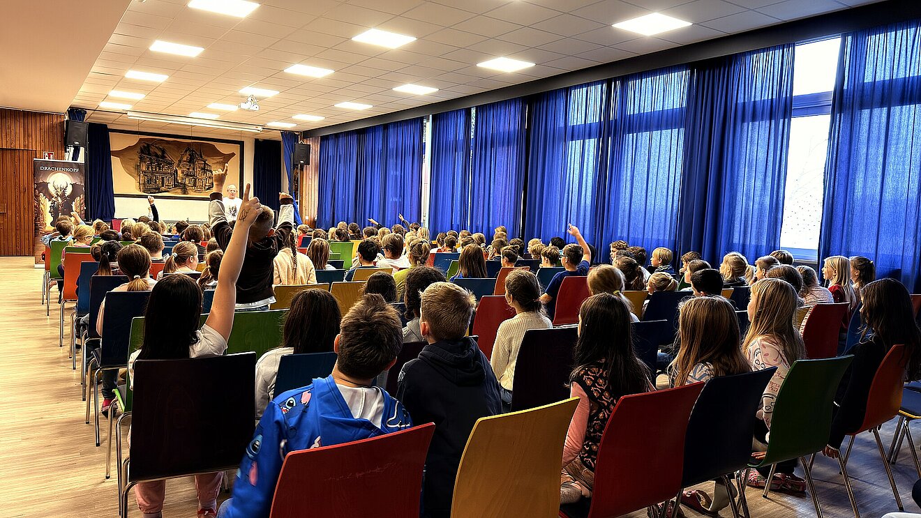Zum Abschluss unserer Lesewoche besuchte uns am 28.11. der aus dem Saarland stammende Buchautor Ari Tur. Ari Tur, alias Dr. Harald Klein ist ein promovierter Archäologe, der viele Jahre in der syrischen Wüste gearbeitet hat. Im Jahr 2015 begann er historische Romane zu schreiben, die auf geschichtlichen Ereignissen basieren. Durch sein ehrenamtliches Engagement entstand die Idee für seine Kinderbuchreihe „ Drachenkopf “, weil er nicht nur Erwachsenen, sondern auch Kindern die Freude am Lesen vermitteln wollte. Mittlerweile hat Ari Tur zwei Teile der Kinderbuchreihe herausgebracht.