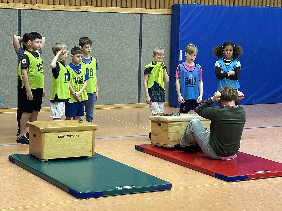 Dabei konnten die Kinder bei verschiedenen Übungen wie Ausdauerlauf, Sprint, Sit-ups, seitlichem Springen, Standweitsprung und weiteren Stationen ihre sportlichen Fähigkeiten testen. Alle drei Klassen waren mit viel Motivation dabei – es hat allen großen Spaß gemacht, auch wenn es zwischendurch ganz schön anstrengend war.