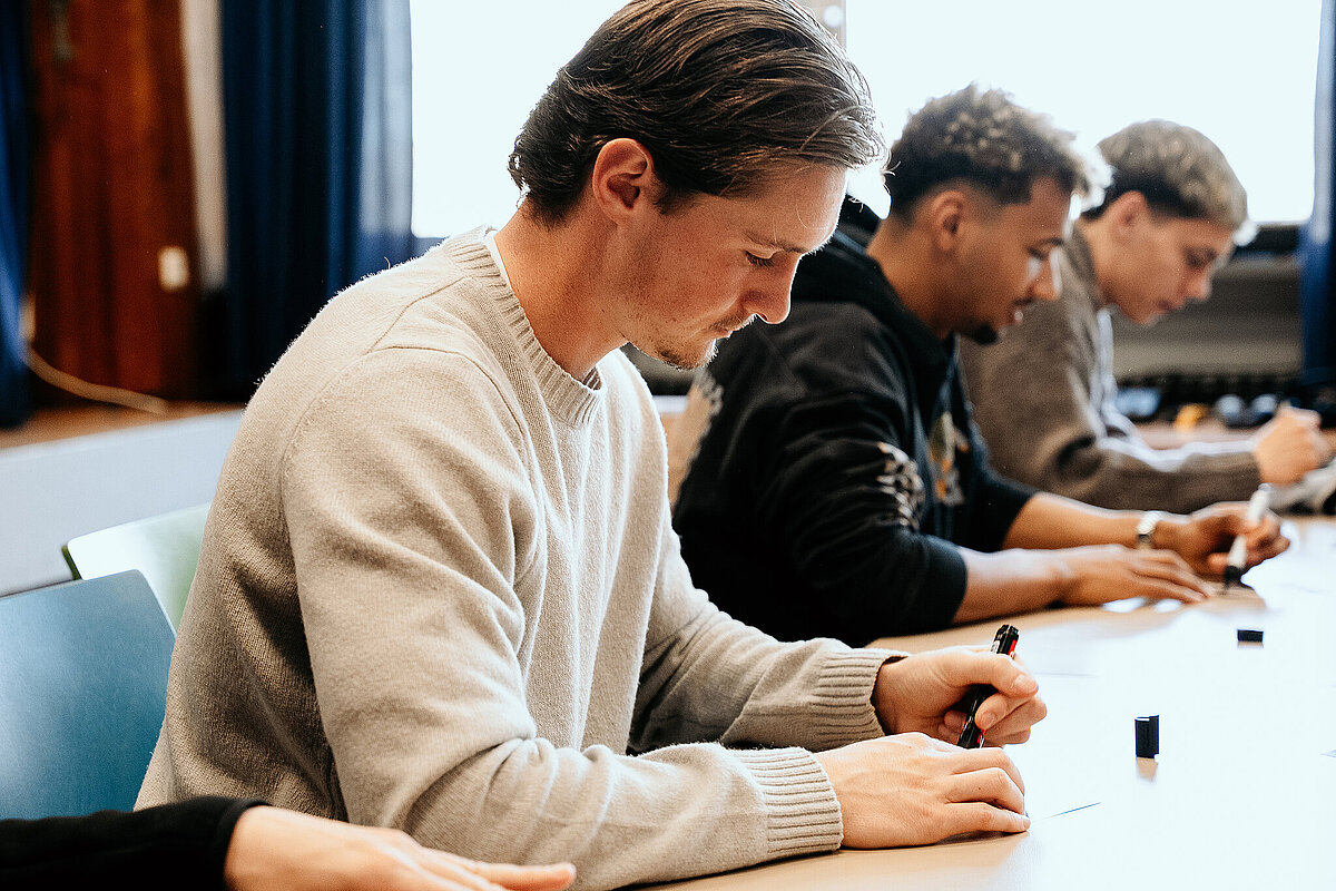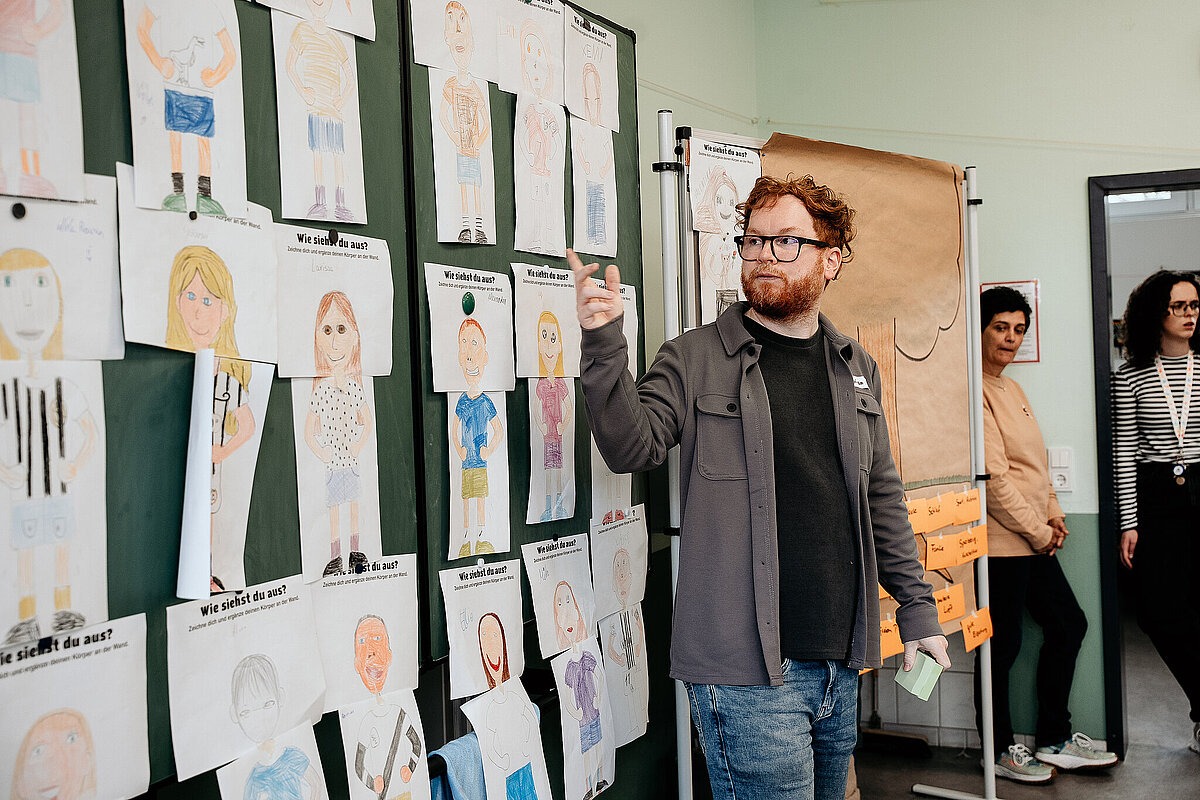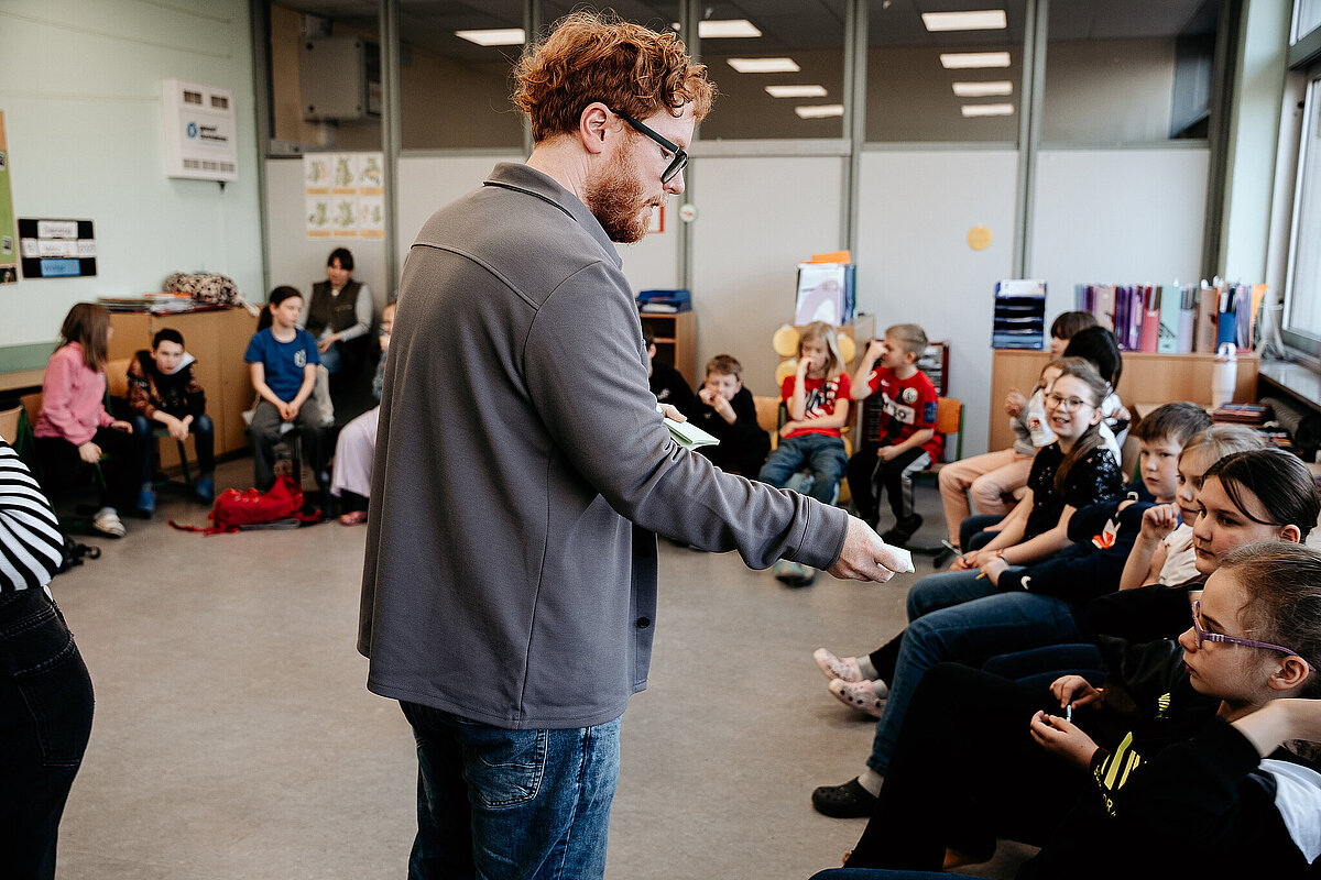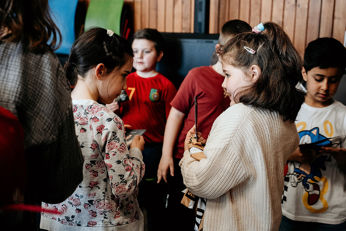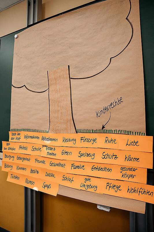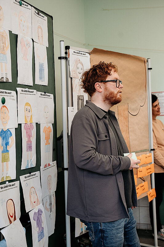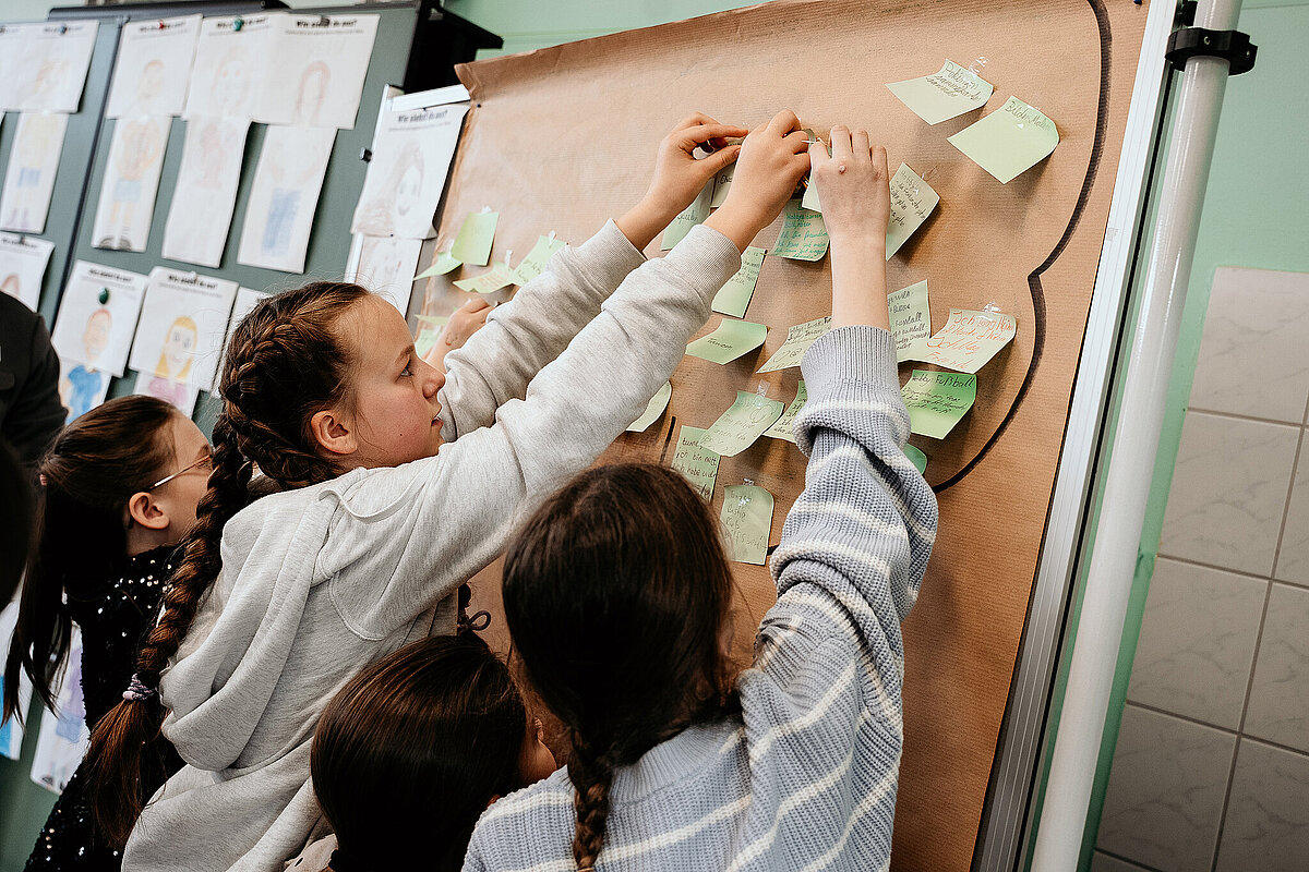 Heute (10. März) war ein ganz besonderer Tag in der Schule. Wir hatten Besuch vom Adolf-Bender-Zentrum und vier Fußballspieler der SV Elversberg kamen anlässlich der Internationalen Wochen gegen Rassismus zu uns an die Schule. In der 1. und 2. Stunde waren wir mit Mitgliedern des Adolf-Bender- Zentrums in unserer Klasse und haben viel über Gerechtigkeit gelernt. Wir durften uns selbst malen und auf einen Zettel unsere Hobbys und Besonderheiten schreiben. Danach haben wir die Zettel an einen Baum gehängt, der an der Tafel befestigt war. Das hat mir Spaß gemacht.