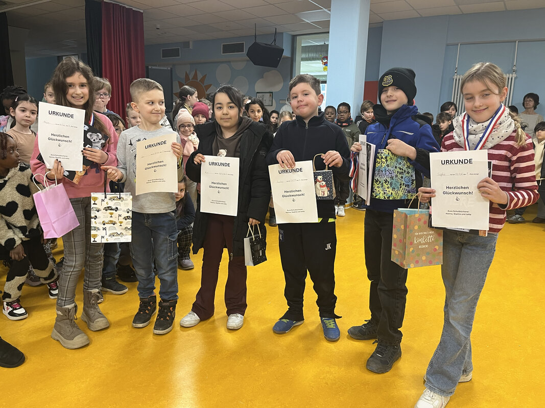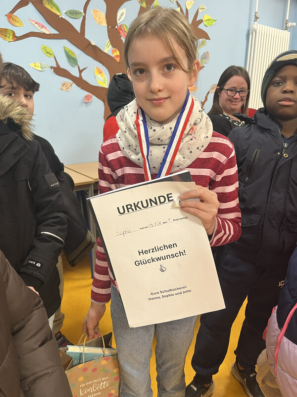 In der Schulbücherei haben die Bücherei-Kinder mit viel Engagement einen Lesewettbewerb für die dritten Klassen organisiert und durchgeführt. Mit großer Begeisterung planten sie den Ablauf, begleiteten die Teilnehmenden und sorgten für einen reibungslosen Wettbewerb. Heute fand die feierliche Preisverleihung statt – und überall sah man strahlende Gesichter. Der Stolz, die Freude und die Begeisterung für das Lesen waren deutlich spürbar und machten diesen Tag zu etwas ganz Besonderem.