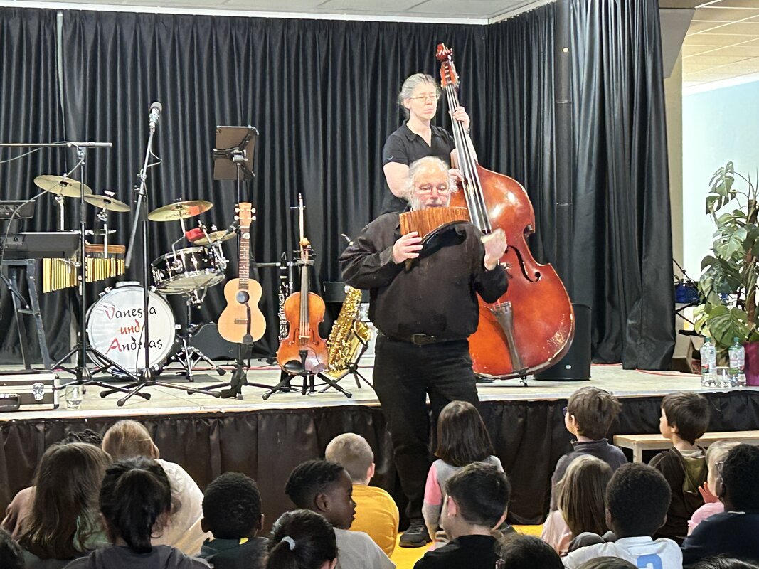 Das Instrumentenkarussell von Vanessa Feilen und Andreas Schuss ist ein interaktives musikalisches Projekt, das sich primär an Grundschulkinder richtet. Das Musiker-Ehepaar aus dem Siegerland stellt dabei verschiedenste Instrumente in Grundschulen vor. Dabei lernen die Kinder die Instrumente nicht nur hören, sondern auch aus der Nähe kennen. Vorgestellt werden u.a. Akkordeon, Baritonsaxophon, Piccoloflöte, Panflöte, Geige u.v.m.