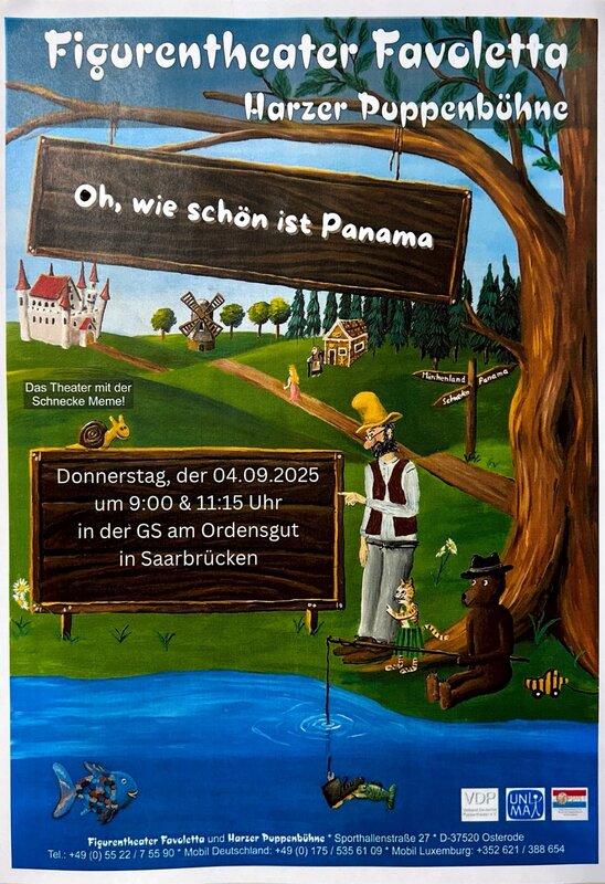 Heute war es wieder so weit: Die Harzer Puppenbühne hat unsere Schule besucht und die Kinder mit dem Stück „OH, WIE SCHÖN IST PANAMA“ begeistert. Wie jedes Jahr wurde viel gelacht, gestaunt und mitgefiebert – vor allem die Schnecke Meme war (wie immer) ein echtes Highlight und hat schnell alle (auch alle neuen) Schülerherzen erobert.