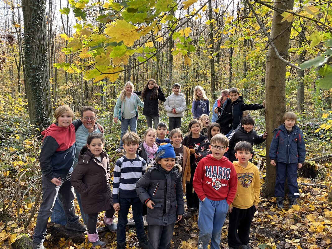 Überraschenderweise war Anfang November das Wetter plötzlich wieder schön. Deshalb machten die Pandas und die Eulen sich auf in den Wald, um als Abschluss des Sachunterrichtsthemas den Wald nochmal richtig zu erleben. Nach verschiedenen Suchaufträgen spielten alle begeistert im Wald und bauten Tipis. Es gab sogar Kinder, die noch nie im Wald waren. Alle hatten einen tollen Vormittag.