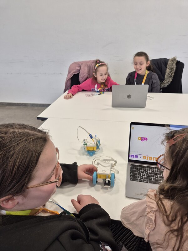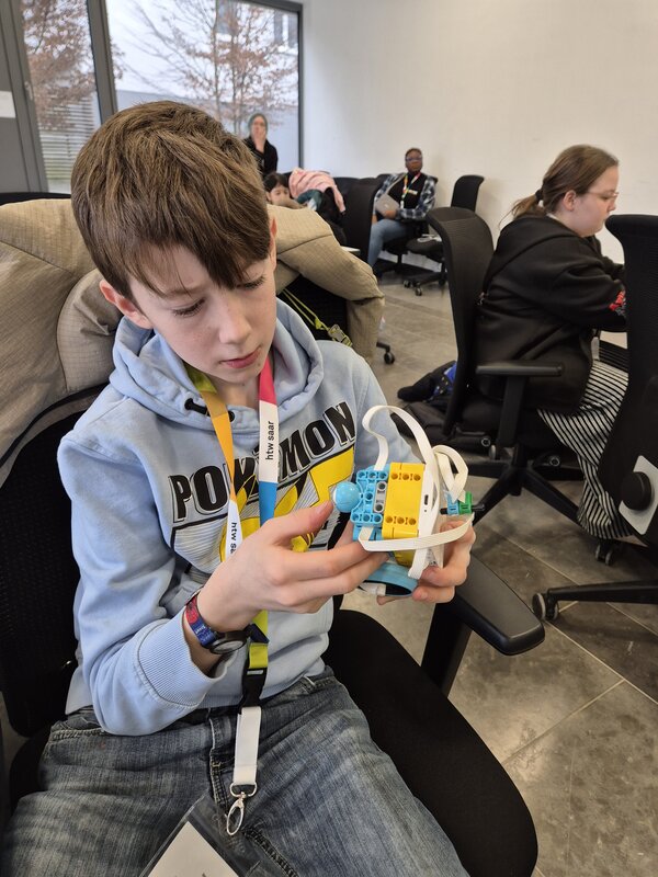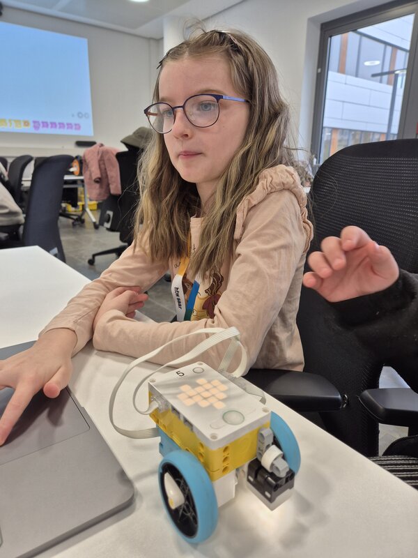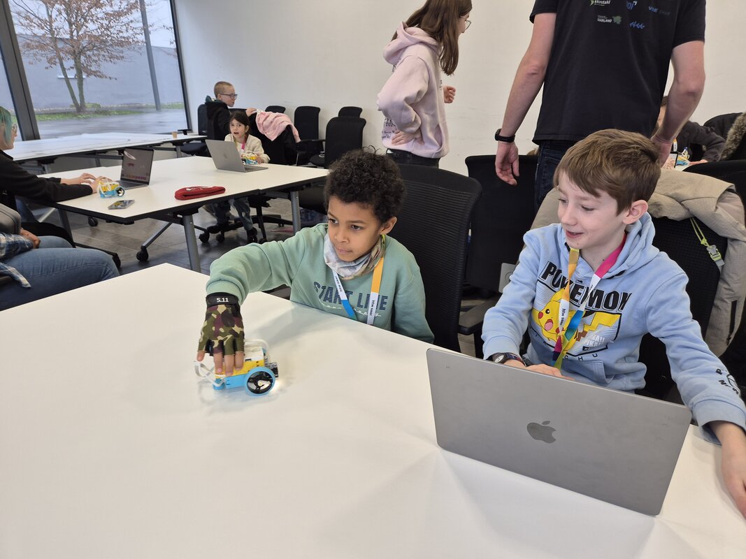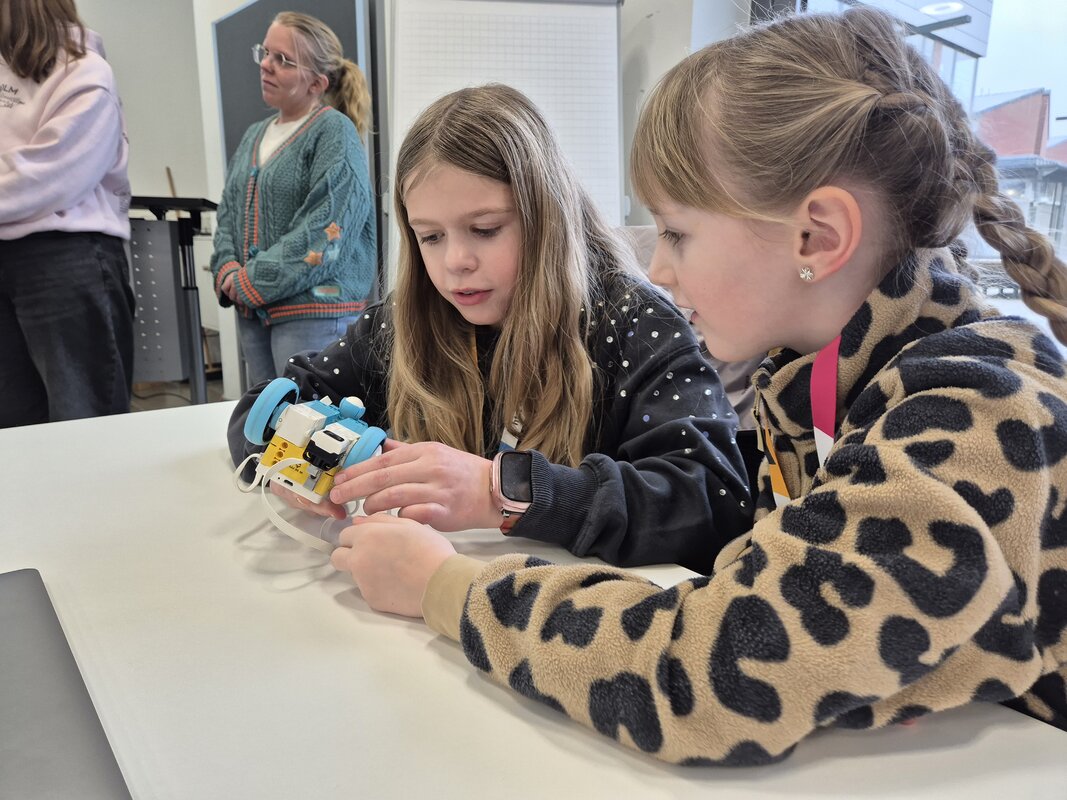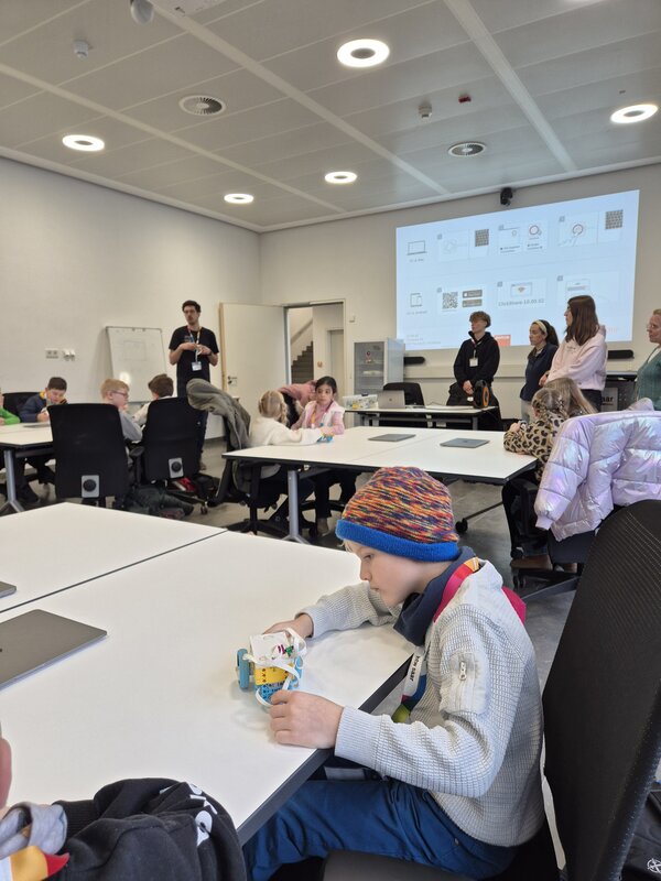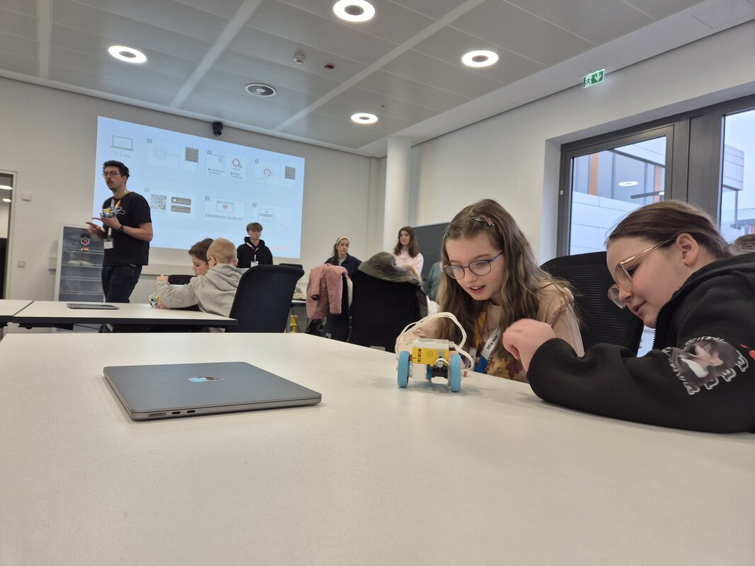 Als letzte Station durften wir Roboterautos programmieren, was uns auch wieder von einem Dozenten gezeigt wurde. Mit dem Programmieren kannten wir uns zum Glück schon ein wenig aus, da wir in unserer Lerngruppe viele Roboter haben, mit denen wir schon gelernt haben, wie man Roboter programmiert. Trotzdem machte uns die Arbeit mit den Roboterautos riesigen Spaß, wie man hoffentlich auf den Bildern sehen kann.