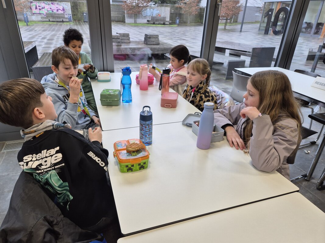 Um etwas über gesunde Ernährung zu lernen, gab es als Klassenbelohnung in der Küche ein tolles Frühstücksbuffet mit lauter gesunden Lebensmitteln, die auch noch richtig super geschmeckt haben!!!