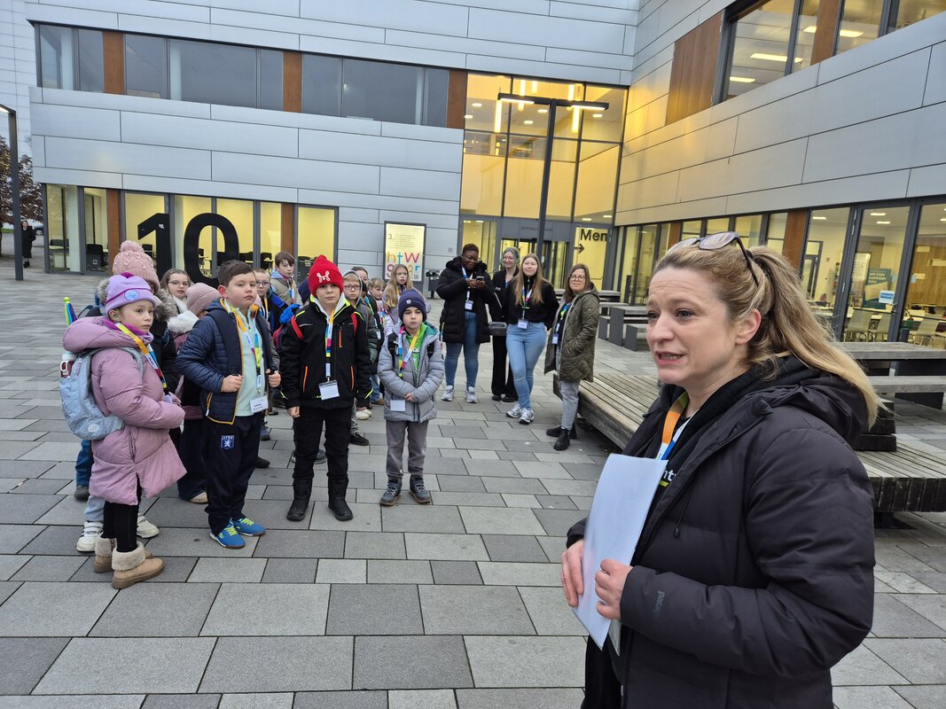 Vor Kurzem besuchten wir Eisbären zusammen mit den Erdmännchen von Frau Böning die Hochschule für Technik und Wissenschaft. Unser Besuch wurde organisiert von Fr. Schild, deren Tochter Lilli in die Erdmännchenklasse geht, und man kann gleich schonmal sagen, dass Fr. Schild das super gemacht hat!