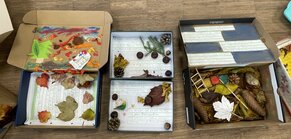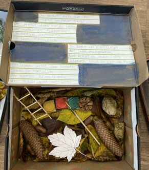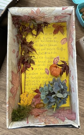 „Ich habe einen Pinsel und ein Playmobil-Männchen in die Kiste gelegt, weil der Herbst als Malersmann die Blätter anmalt.“