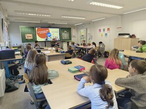 Das ilf (Institut für Lehrerfort- und Weiterbildung) bietet an diesem Tag kostenlose Online-Bilderbuch-Lesungen an. In unserer Aula wird für unsere Erstklässler die Geschichte "Team Lupe ermittelt" übertragen.
