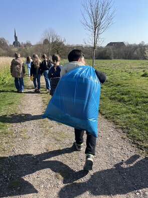 Ausgestattet mit Handschuhen, Müllsäcken und viel Motivation machten sich unsere Schülerinnen und Schüler gemeinsam mit ihren Lehrkräften auf den Weg, um rund um das Schulgelände sowie in der näheren Umgebung Abfälle zu sammeln. Dabei kam eine beachtliche Menge an Müll zusammen; von Verpackungen über Flaschen bis hin zu allerlei achtlos weggeworfenen Gegenständen.