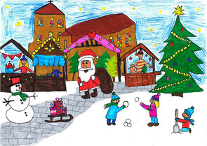 Auch ein weiterer schöner Erfolg kommt aus der 3. Klasse. Karina Wezel gestaltete die Weihnachtskarte für den Stadtverband für Sport. Ihr Bild wurde ausgewählt und als offizielle Weihnachtskarte des Amtes verwendet.