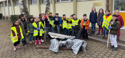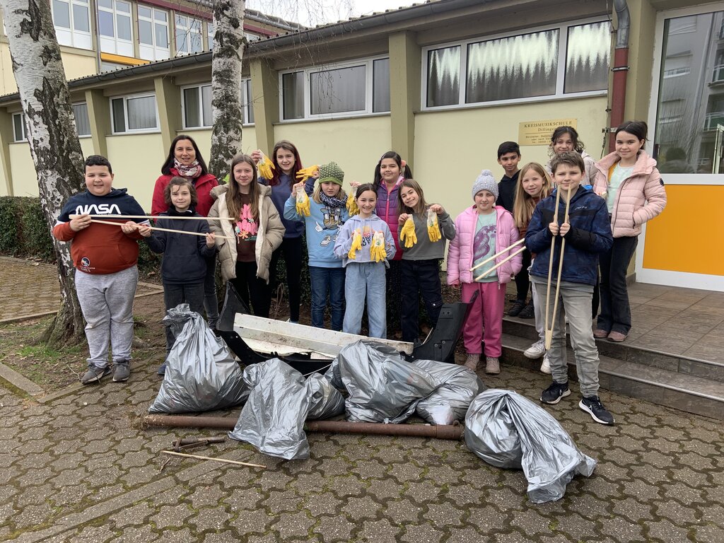 Somit haben sich am Freitag, 17. März 2023 sieben Klassen der Odilienschule mit ihren Lehrkräften, Handschuhen, Müllsäcken, Greifzangen, guter Laune und jeder Menge Tatkraft auf den Weg gemacht, den Schulhof, die nähere Umgebung der Schule, den Wald und die Innenstadt von Müll zu befreien.