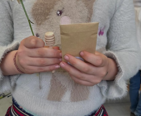 Als krönenden Abschluss gab es sogar eine Nisthilfe für Bienen und andere Insekten als wertvolle Unterstützung für unseren Schulgarten sowie Blumensamen und Honiglöffel für die Kinder – ein tolles Zeichen für nachhaltiges Engagement!